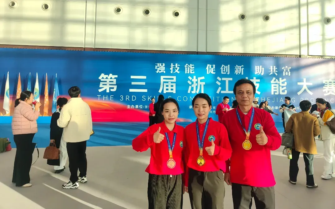 On November 29th, Zhang Gang from Meixinda Textile Printing and Dyeing won the first prize (gold medal) in the textile dyeing event of the 3rd Zhejiang Skills Competition, achieving a historic breakthrough in winning gold medals in provincial skills competitions for Wuxing District.