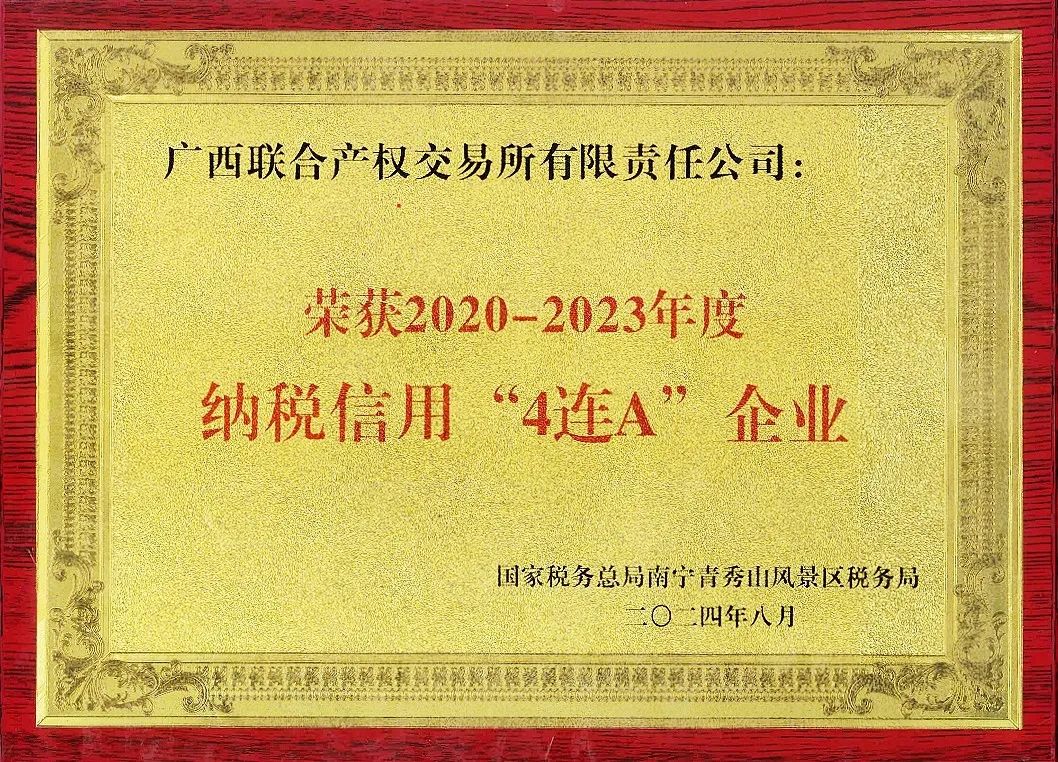 廣西聯(lián)交所榮獲2020-2023年度納稅信用“4連A”榮譽稱號